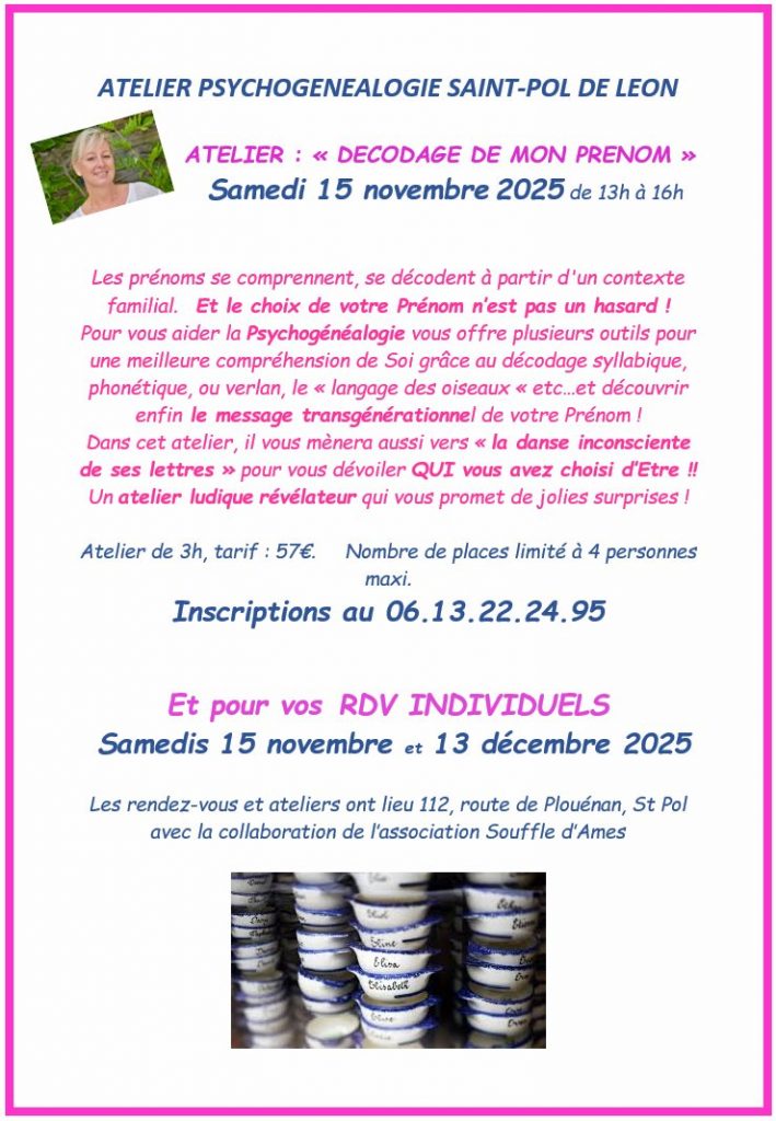 ATELIER de psychogénéalogie transgénérationnelle à Saint-Pol !!!